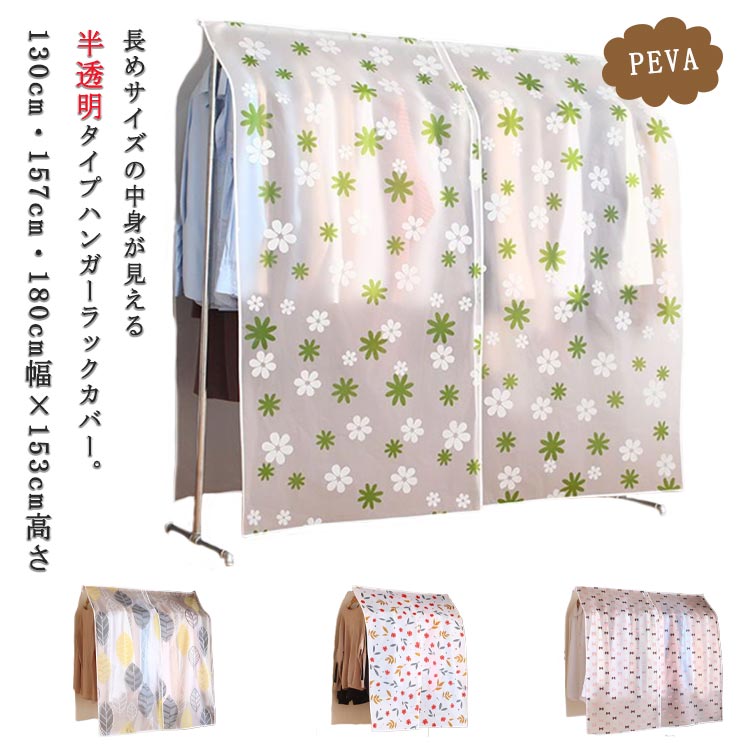 ■ハンガーラックカバー 半透明 押入れ 【130cm コートハンガー 厚手服 高さ153cm 花柄 幅】 無地 防塵 防ホコリ 防湿 157cm 高め 長め 18