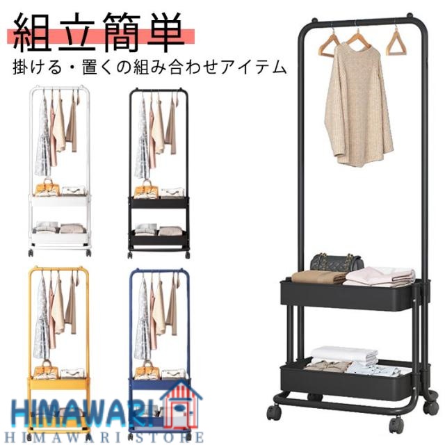 ■スリム キャスター付き コートハンガー ハンガーラック バスケットトローリー ハンガーラック 北欧 幅42cm ワードローブ 組立簡単 パイプ