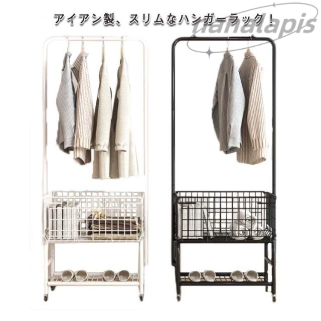 ■ハンガーラック おしゃれで頑丈 キャスター付き カゴ付 ハンガーラック スリム アイアン コートハンガー コート掛け パイプハンガー かご
