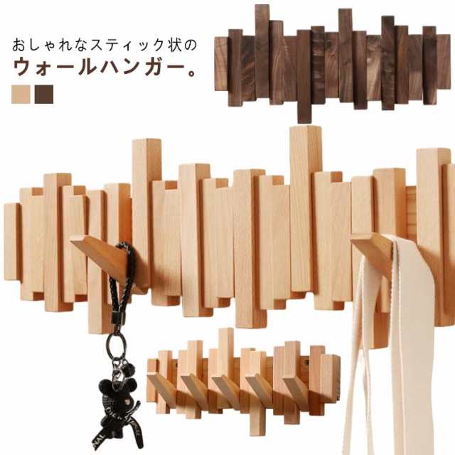 ■スティック 壁掛け フック 木製 天然木 ウォールハンガー ウォールフック コートハンガー 壁掛け収納 コート掛け 洋服掛け 衣類収納 帽子