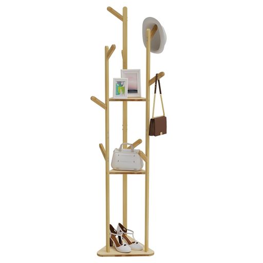 ◆商品名:IBUYKE ポールハンガー ハンガーラック衣類収納 衣類掛け 木製 コートハンガー 落ちにくい ラウンド 土台 枝型フック設計 玄関 リビング