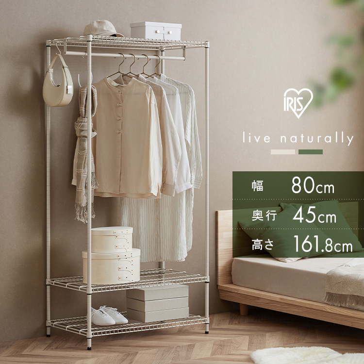 ■スチールラック 幅80 収納ラック 3段 収納棚 ハンガーラック コートハンガー パイプハンガー ワードローブ オープンラック メタルラック