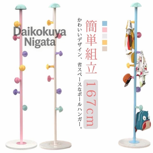 キッズハンガー ポールハンガー 子供 かわいい 子ども ハンガー おしゃれ スリム コートハンガー キッズ キッズハンガー ポールスタンド 洋服かけ かばん掛け 子供部屋 リビング 片付け 小物収納 倒れない カラフル