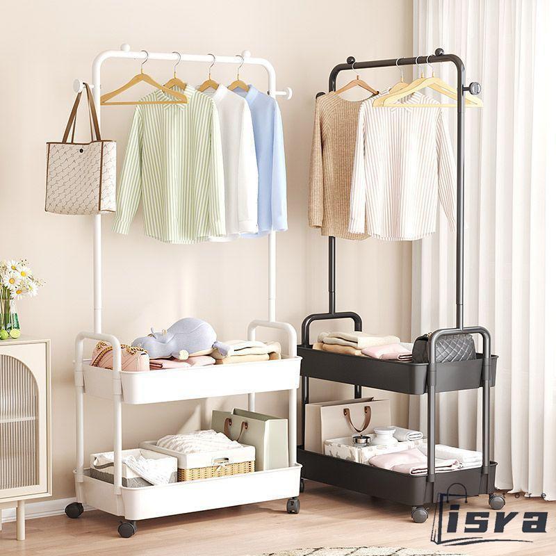 ■スリム キャスター付き コートハンガー ハンガーラック バスケットトローリー ハンガーラック 北欧 幅42cm ワードローブ 組立簡単 パイプ