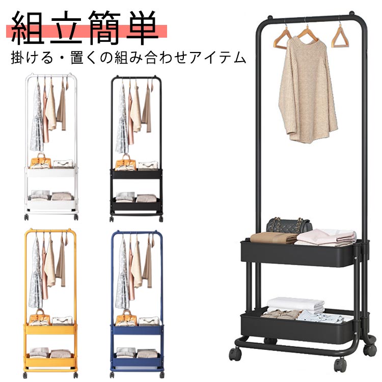 ■ハンガーラック スリム おしゃれ バスケットトローリー 幅42cm コートハンガー 北欧 パイプハンガー ワードローブ 組立簡単 キャスター付