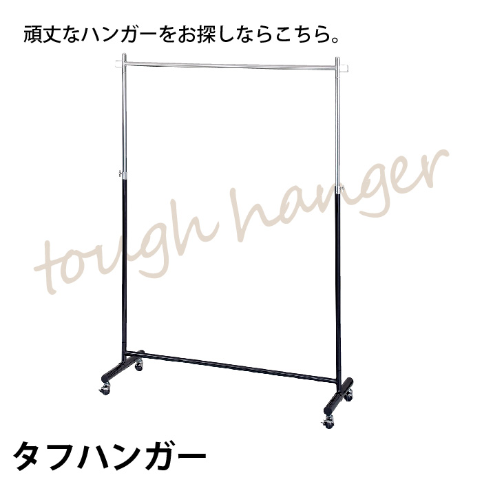 たっぷり掛けられる、耐荷重60kgの頑丈ハンガー。設置場所や使う人に合わせて高さを調節できます。模様替えやお掃除のときもキャスター付きで移動もラクラク。