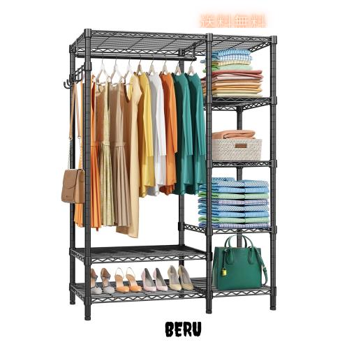 ◆商品名:ワードローブ ハンガーラック コートハンガー 衣類収納 省スペース コート掛け 棚板高さ調節 大容量 棚付き ブラック 幅114×奥行40×高