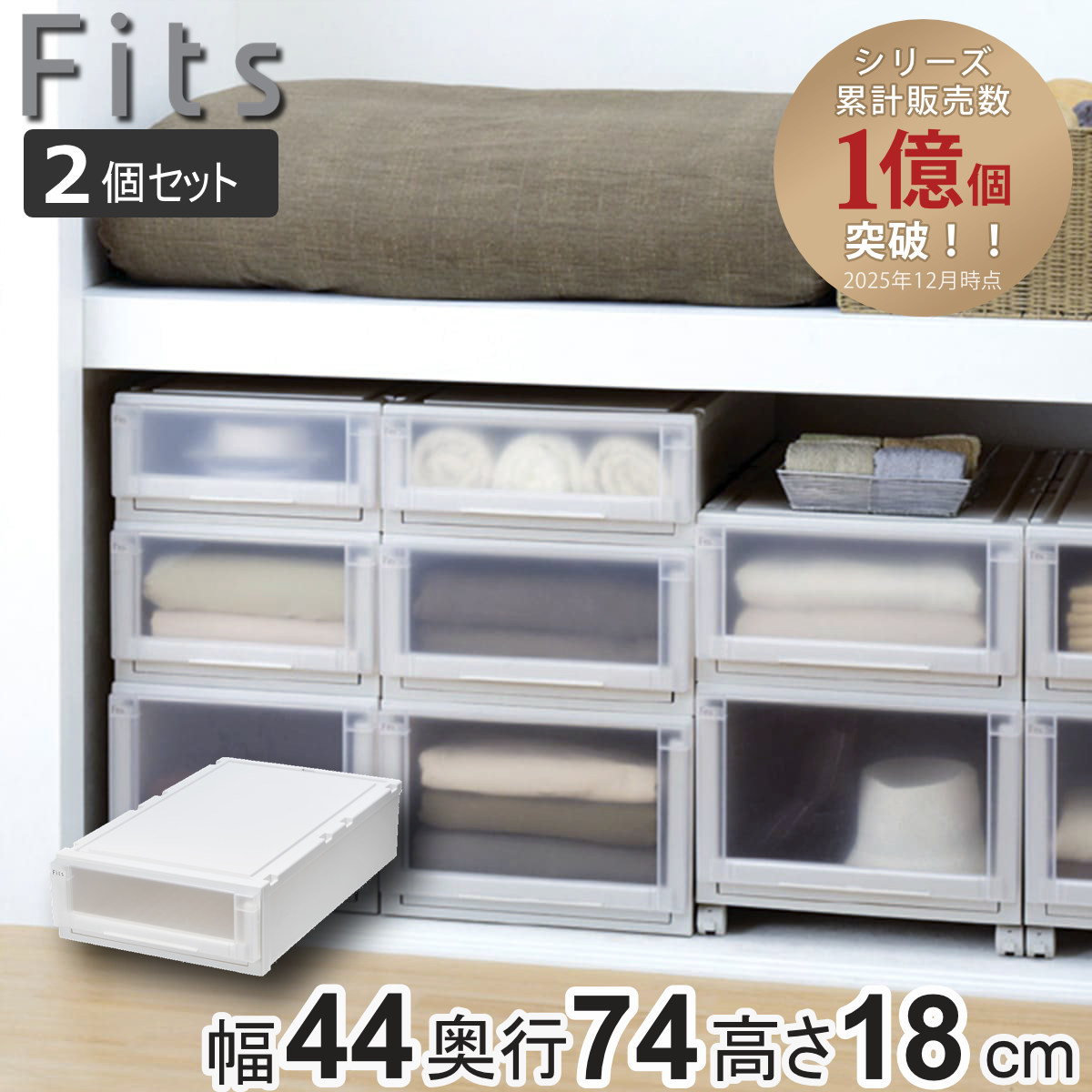 ■収納ケース 2個セット 幅44×奥行74×高さ18cm Fits フィッツケース アドバンス 74-44S 押入れ ( 収納 収納ボックス 押し入れ 衣装ケー