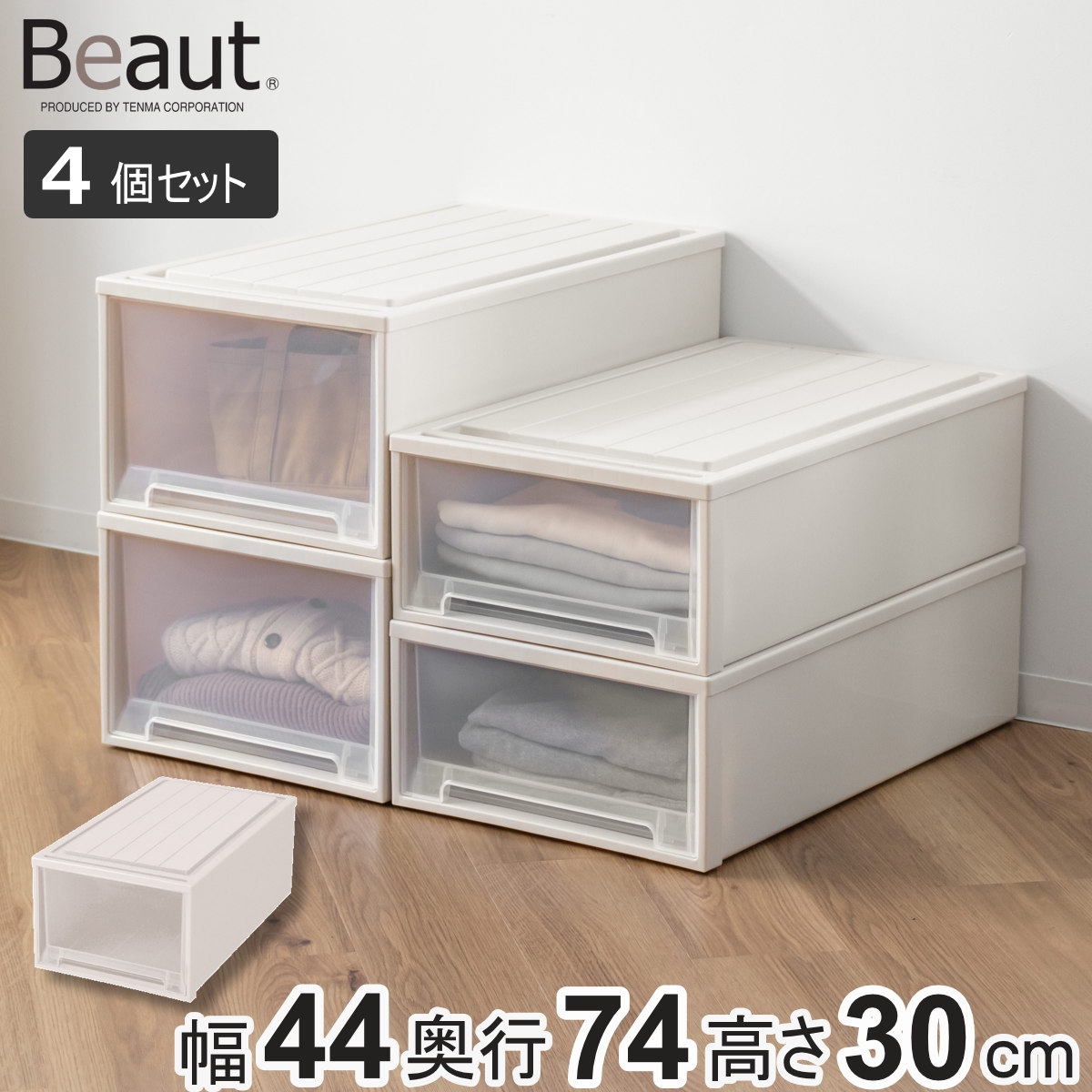 ■収納ケース 4個セット Fitsケースに積み重ねられる ビュートケース ワイド W-30 引き出し 押入れ ( 収納 衣装ケース 積み重ね 幅44 奥行
