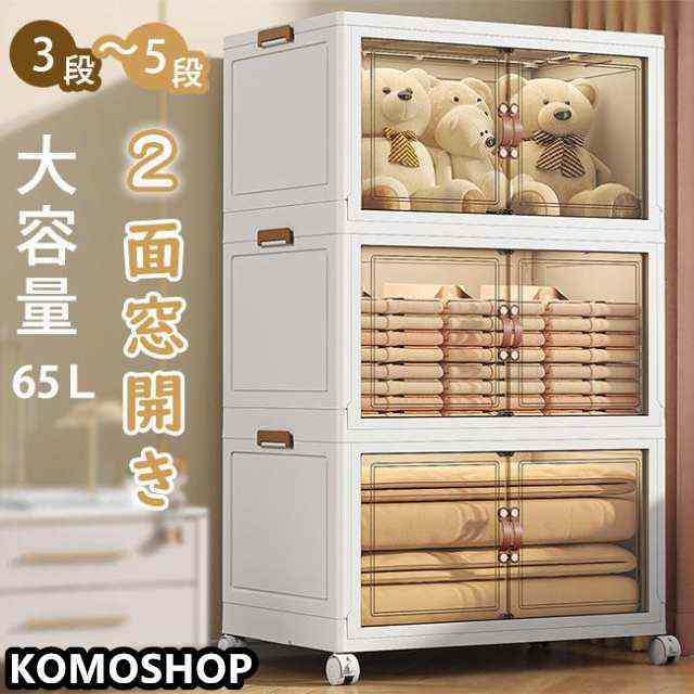 ■収納ボックス 折りたたみ 収納ケース キャスター付き 衣装ケース クロゼット 押入れ 収納 両開き 大容量 新生活 65L フタ付き 整理棚 3-5