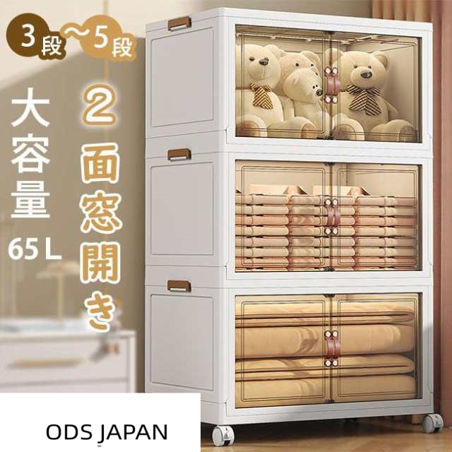 ■収納ボックス 折りたたみ 収納ケース キャスター付き 衣装ケース クロゼット 押入れ 収納 両開き 大容量 新生活 65L フタ付き 整理棚 3-5
