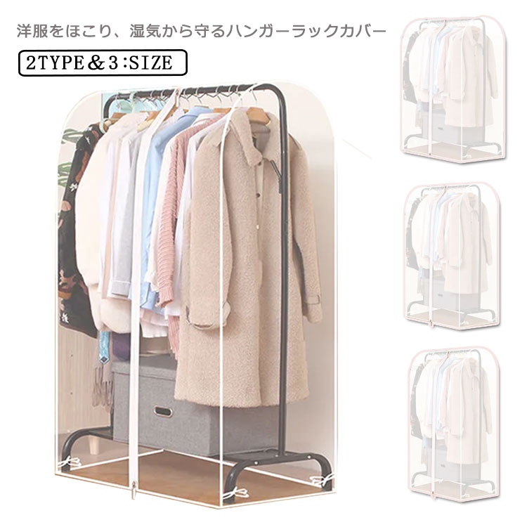 ■送料無料 洋服カバー 透明 防塵 ハンガーラックカバー 防湿 洋服掛け 調節 衣類カバー 押入れ 収納 ポールハンガー コートハンガー コー