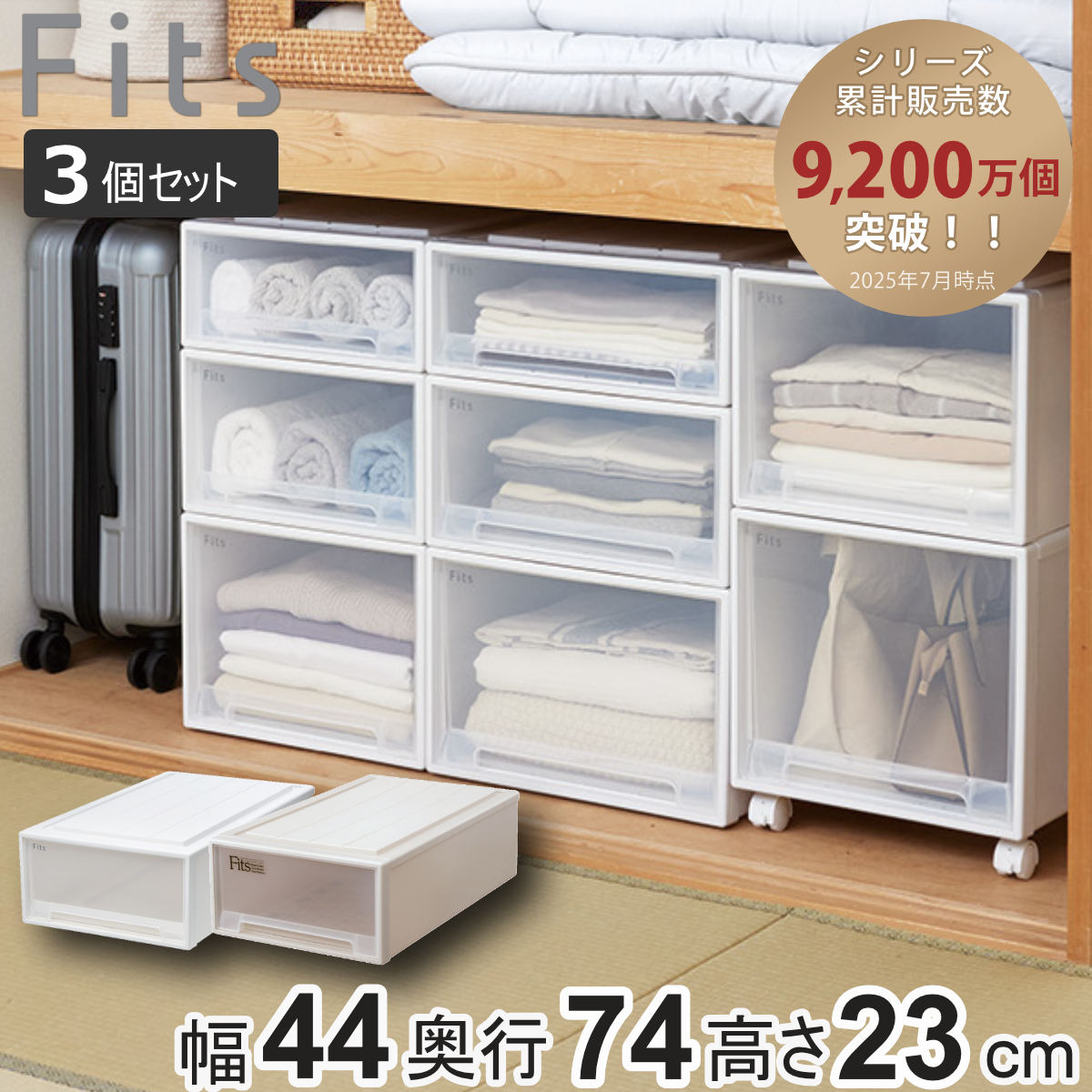 ■収納ケース Fits フィッツ フィッツケース ロングL 引き出し 同色3個セット 押入れ ( 収納 衣装ケース 押入れ収納 積み重ね 幅44 奥行74
