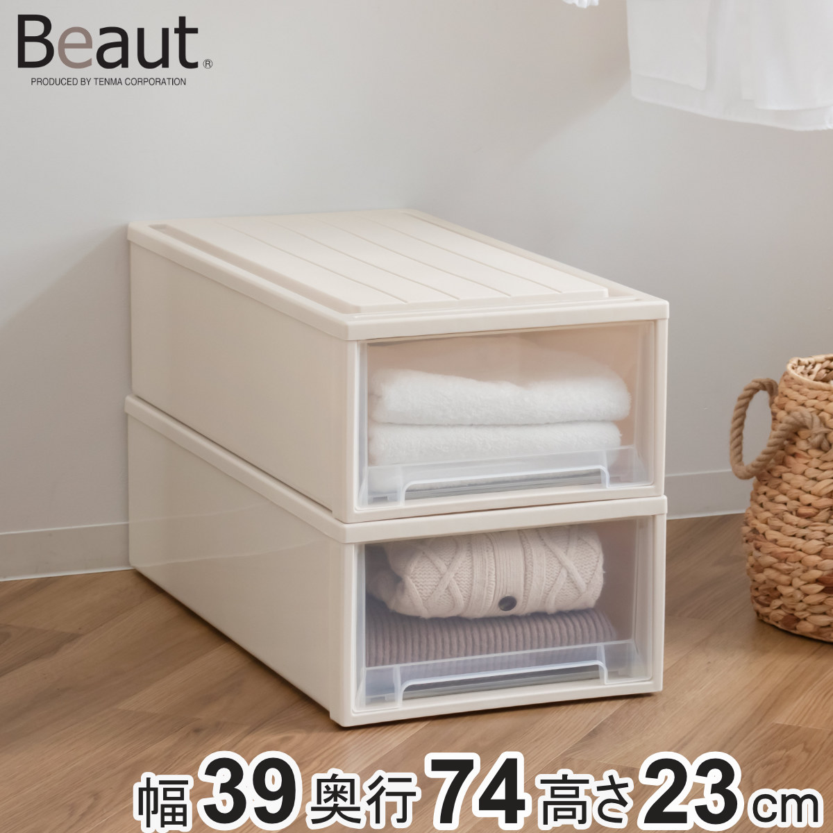 ■収納ケース Fitsケースに積み重ねられる ビュートケース L-23 引き出し 押入れ ( 収納 衣装ケース 押入れ収納 積み重ね 幅39 奥行74 高