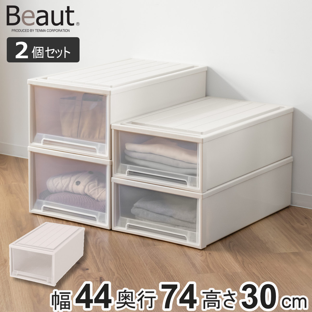 ■収納ケース 2個セット Fitsケースに積み重ねられる ビュートケース ワイド W-30 引き出し 押入れ ( 収納 衣装ケース 積み重ね 幅44 奥行