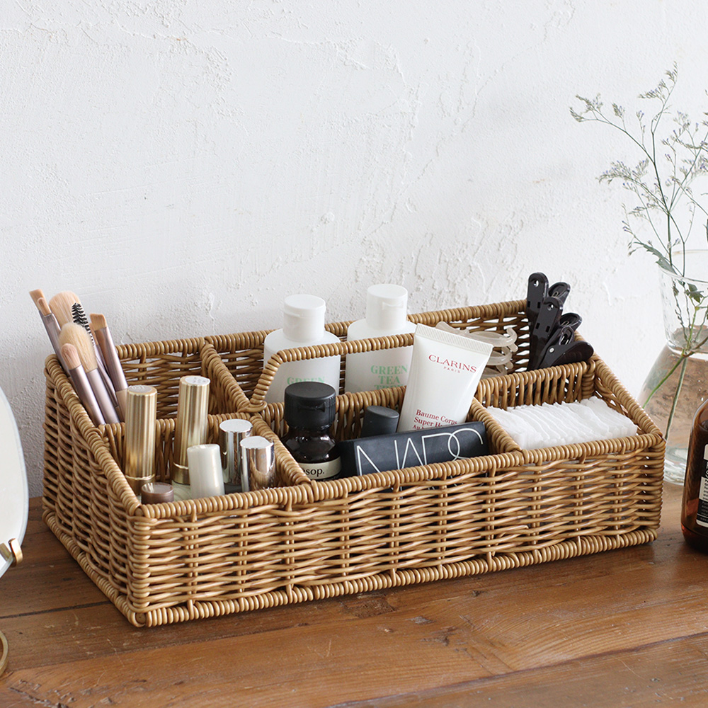 ナチュラルな雰囲気のお部屋にぴったりのデザインです毎朝使うコスメをまとめて収納したり、生活感が出がちなゲーム機や充電コードなどもスッキリと収納できますハンドル付きで移動もラクラクナチュラルな風合いと実用性を兼ね備えた、日用品の整理整頓に便利な収納アイテムです#洗えるラタン #ラタン調 #天然素材風
