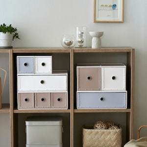 デスク・パソコンまわり・リビング・キッチンで小物や書類の分類収納に便利です。720はプリーツマスクがピッタリ収納可能なサイズです。750はCDが25枚収納可能なサイズです。キッチンなどの調味料、缶詰などのストック収納にも◎。701はA4サイズのファイルが収納可能なサイズです。除菌シート、マスク、クリーナーリフィルのストック収納や、取扱説明書、学校プリントの保管に便利です。780は3つの引出しがあり、プリーツマスクや除菌シートなど分別収納が可能です。また、モジュール設計により、積み重ねができ、好きなサイズ、カラーを自由に組み合わせることができます。