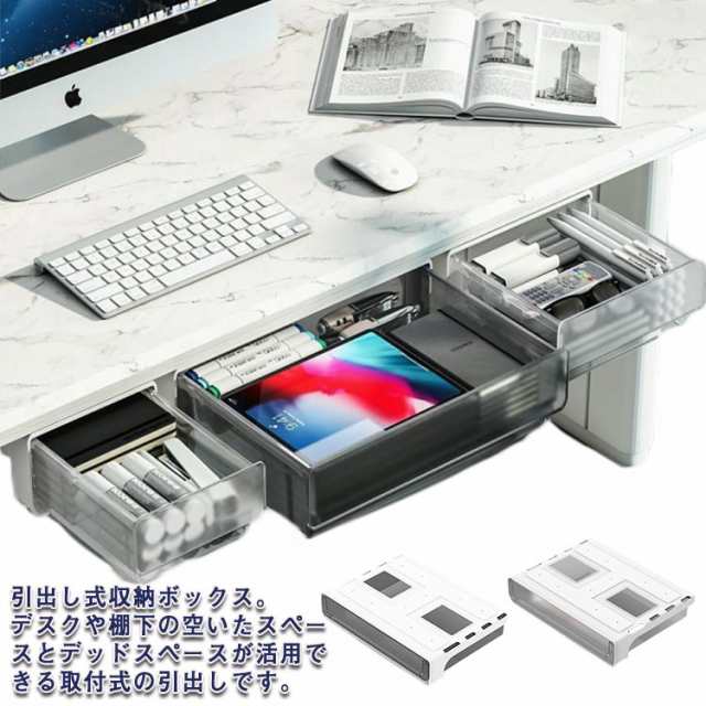 ■2個セット 机下収納 引き出し 3サイズ選べる 取り付け式 後付け 収納ボックス 小物入れ スライドトレー 隠し式 デスク下引き出し 机下収