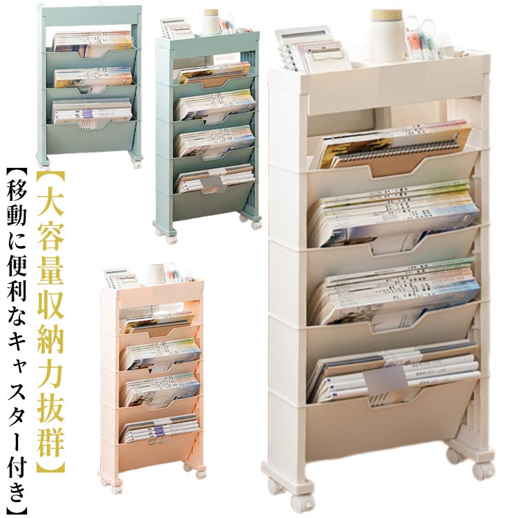 ■ファイルワゴン A4対応 キャスター付 デスク下収納 本立て ファイル立て 5段 ファイルワゴン マガジンラック 両面 収納ボックス 収納 6段