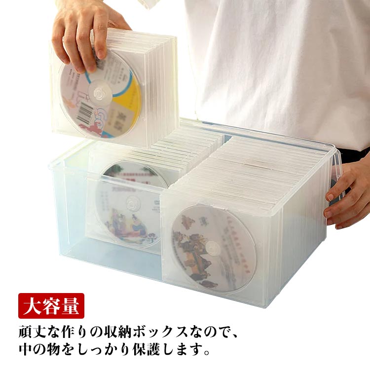 ■CDケース DVDケース 収納ボックス 8L フタ付き 収納ケース PS4 大容量 バックル式 持ち運び プラスチック おしゃれ クリア 完成品 メディ