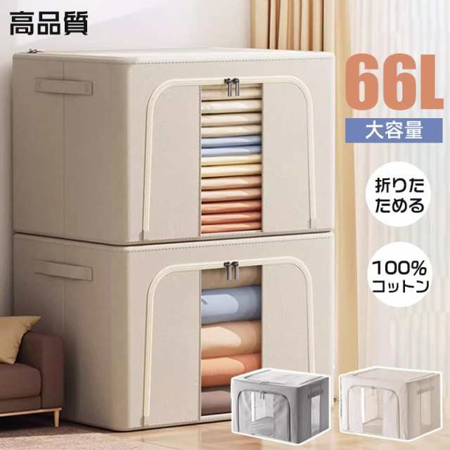 ■冬新作 送料無料 収納ボックス 66L 衣類収納 収納ケース ボックス Lサイズ 衣類収納袋 布 布製 折りたたみ 大容量 フタ付き おしゃれ 省