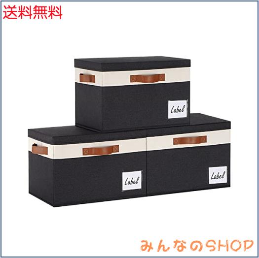 ■LHZK 収納ボックス 蓋付き 幅40×奥行30×高さ26cm 3点セット 折りたたみ式 収納ケース ハンドル付き 分類用ラベル 丈夫なキャンバス生地