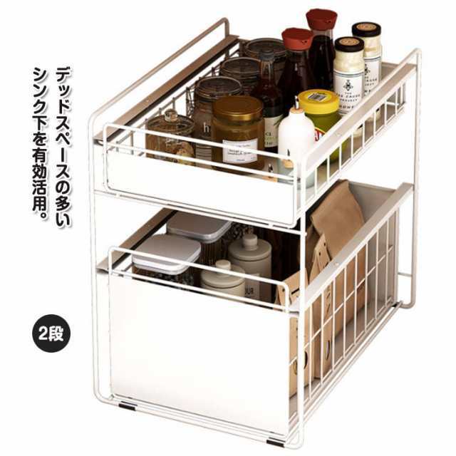 シンク下収納 スライドラック シンク下 収納 スライド 引き出し スリム 2段 棚 収納ボックス シンク下収納ラック 調味料 食器 調理器具 キッチン収納 洗面台下 キッチンラック 収納棚 シンク下収納ワゴン 隙間収納