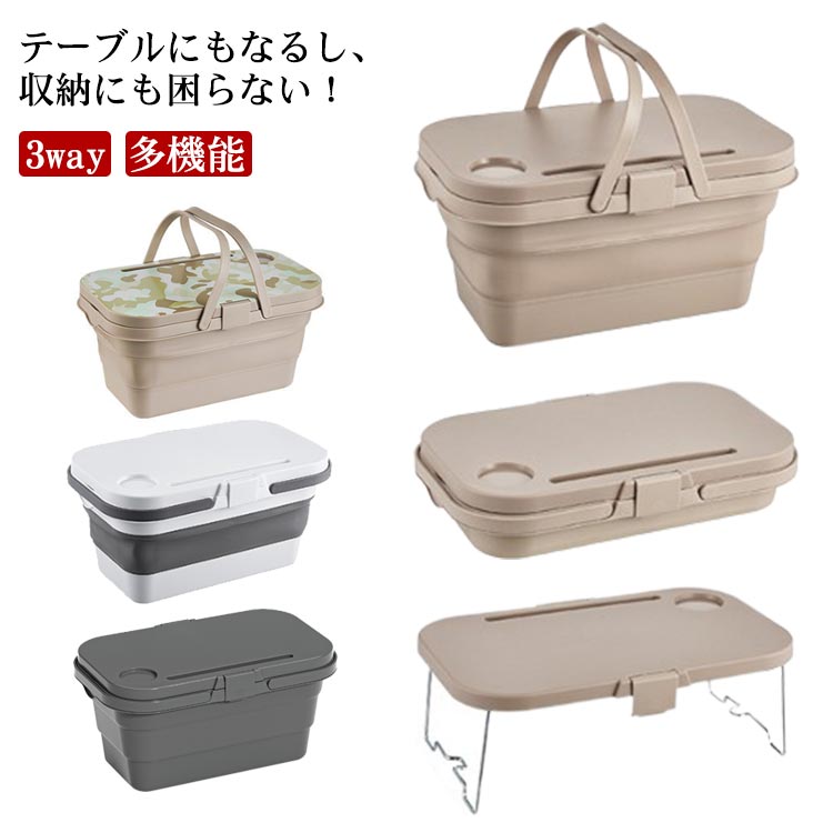 ■3way 多機能 ピクニック バスケット キャンプ 収納ケース 収納バスケット レジャー 持ち運び コンパクト収納 収納ボックス 持ち運び テー