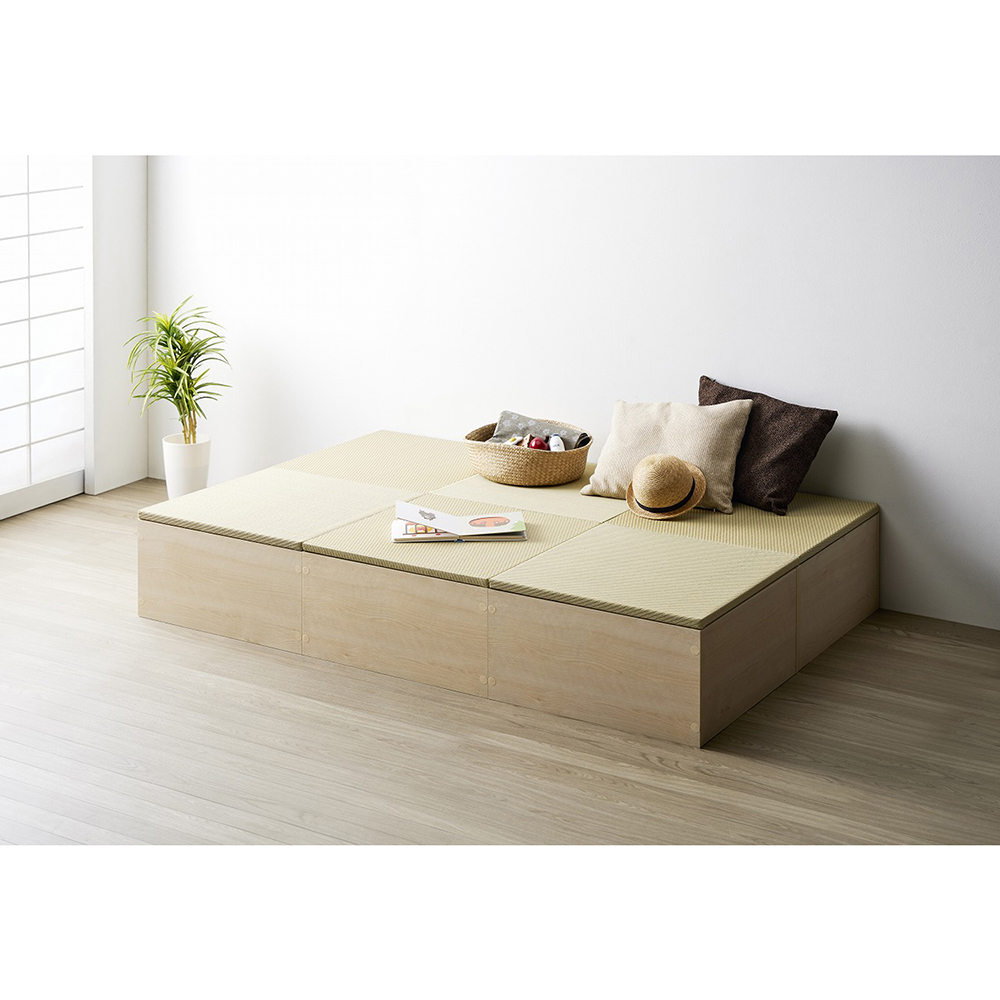ボックス型なのでどこからでも腰掛けられて、複数台並べればごろ寝スペースにポリプロピレン製のパイプ材をい草と同じ要領で織り込んだデザイン性の高い畳を採用畳の発色がよく、明るくスタイリッシュでモダンな印象畳下は大容量の収納ボックスになっているので季節ものやストック収納に便利1台ずつが大きすぎず畳や中天板が軽量なので、物の出し入れもらくらく畳の裏面には滑り止めシートを四隅と中央の5カ所に貼り付けていてずれにくい仕様樹脂畳は汚れたらサッと水拭きできるので日常のお手入れも簡単扱いやすいので小さなお子さまやペットのいるご家庭にも安心です#小上がり#和モダン#地震対策 #防災 #防災グッズ