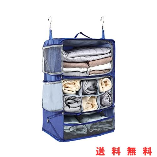 ■[タビトラ] 収納ボックス 吊り下げ インナーバッグ 衣類 つりさげ 収納 ラック 旅行 出張 持ち運べるクローゼット 省スペース 大容量 3段