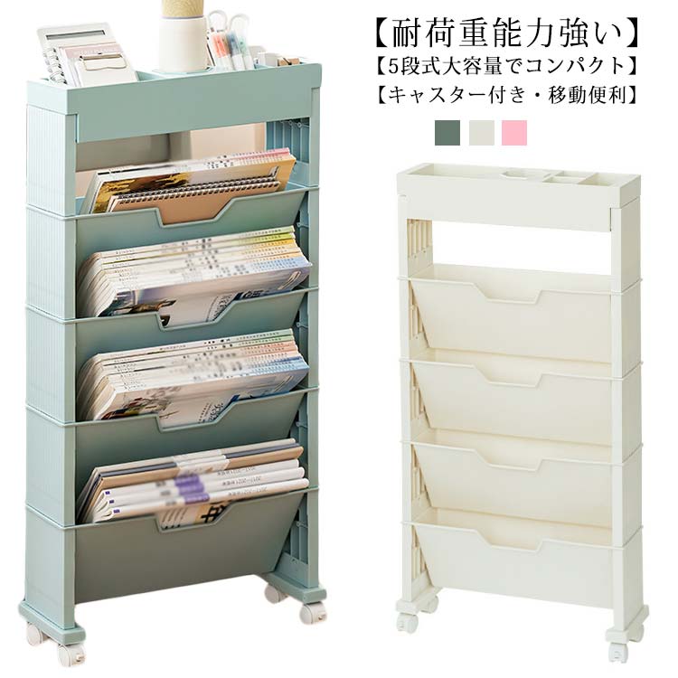 ■ファイルワゴン デスク下収納 マガジンラック 両面 収納 デスク下本棚 A4対応 本立て ファイル立て 収納ボックス 5段 6段 棚 小物収納 文