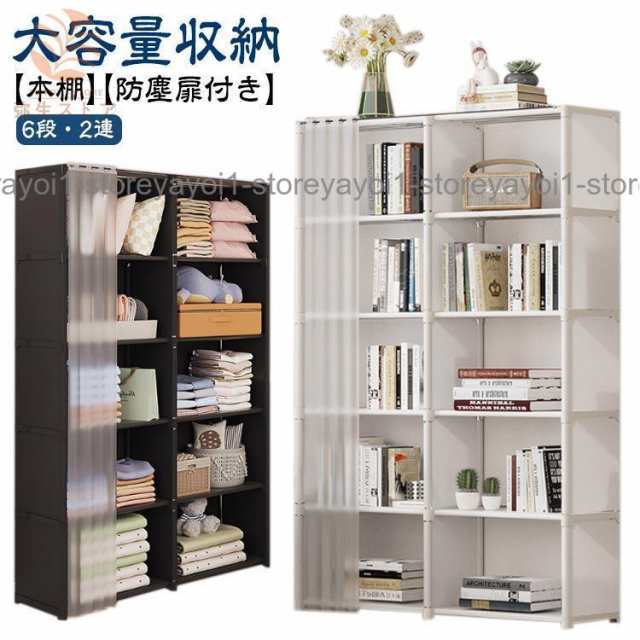 ■本棚 6段 2連 漫画 コミック コミックラック 書棚 扉付き 収納 ブックシェルフ 収納ラック 収納ボックス おしゃれ スリム 絵本棚 大容量