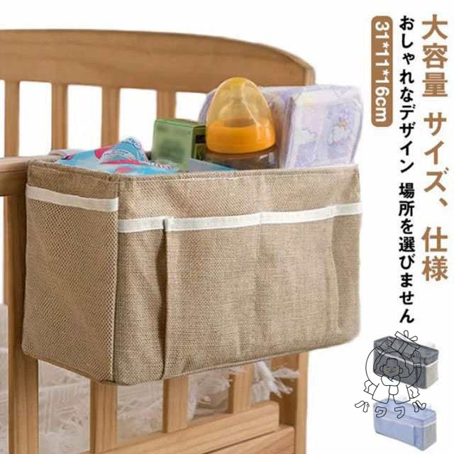 ■【パワフル】収納袋 吊り下げ 収納ボックス 大容量 綿麻 仕切り サイドポケット おむつ入れ オムツケース 哺乳類 小物整理 収納ケース マ