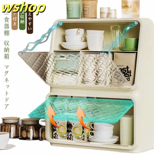 ■【wshop 】ミニ食器棚 卓上食器棚 食器棚 調味料棚 ミニカップボックス ミニカップ棚 2段 上置き カウンター上 収納棚 収納ボックス 収納