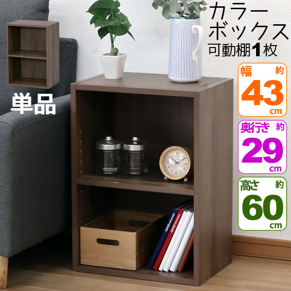 カラーボックス2段ブラウンMBS-02の説明 カラーボックス2段 お部屋に馴染むシンプルな木目調カラーボックス 落ち着いたブラウンの木目柄 シックな家具との相性が良いブラウン 約幅43cm奥行29cm高さ60cm 使いやすいコンパクトなサイズ感 可動棚板1枚 お好みの高さに調節できる棚板1枚(10段階調節可能) 横置きにしても使える! 組み立て時に棚板を固定して作ることができるので横置きして使うことも可能!使い方がひろがる!! 外寸:約幅42.8×奥行29.2×高さ59.9cm (約幅43 奥行き29 高さ60) 内寸:約幅39.2×奥行27.6×高さ56.2cm 製品重量:約5.5kg 耐荷重:固定棚10kg/可動棚10kg/天板10kg/横置き10kg 商品名: カラーボックス2段 横置きA4ファイル対応 縦置きB5ファイル対応 収納棚 幅42.8cm 奥行29.2cm 高さ59.9cm(約 幅43cm 奥行30cm 高さ60cm)教科書 学用品 子ども部屋 シンプル 木目柄 おしゃれ かわいい 洗面所 キッチン 漫画 リビング 本棚 コ