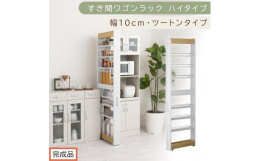 ■【ふるさと納税】【完成品でお届け】すき間ワゴンラック ハイタイプ〔幅10cm・ツートンタイプ〕(オーク×ホワイト)隙間収納 キッチン