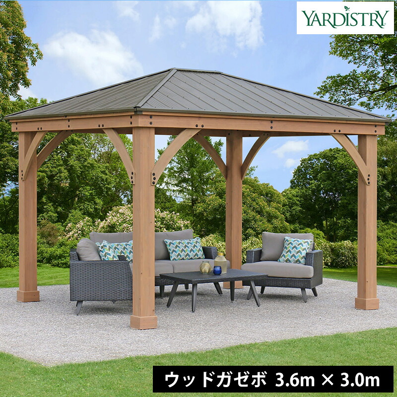 ■Yardistry ヤーディストリー ウッドガゼボ アルミ屋根12×10フィート約3.6×3.0m 木製 ガゼボ 東屋 パーゴラ 屋外 大型 日よけ 雨よけ 庭