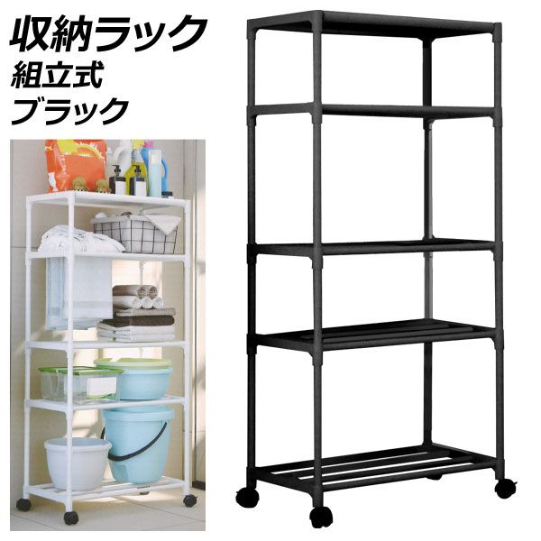 ■収納ラック ブラック キャスター付き 散らかりがちな脱衣所まわりをスッキリ整頓 AP-UJ1121-BK