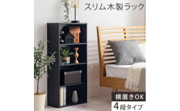 ■【ふるさと納税】【完成品でお届け】スリム多目的ラック〔4段〕(ブラック)カラーボックス 漫画 本棚 スリム 収納 横置き 薄型 収納棚