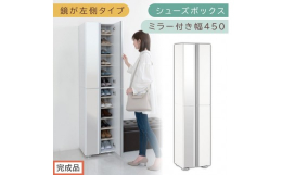 ■【ふるさと納税】[完成品でお届け]シューズボックス ミラー付き幅 45cm[鏡が左側タイプ](ホワイト)シューズラック 扉付き スリム 1