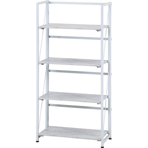 ■整理 収納 棚 オープンラック 約幅610mm 4段 ストーン 折りたたみ式 アジャスター付 折りたたみシェルフ キャビネット 完成品 リビング