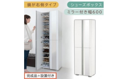■【ふるさと納税】[完成品+設置付き]シューズボックス ミラー付き 幅60cm[鏡が右側タイプ](ホワイト)シューズラック 扉付き スリム