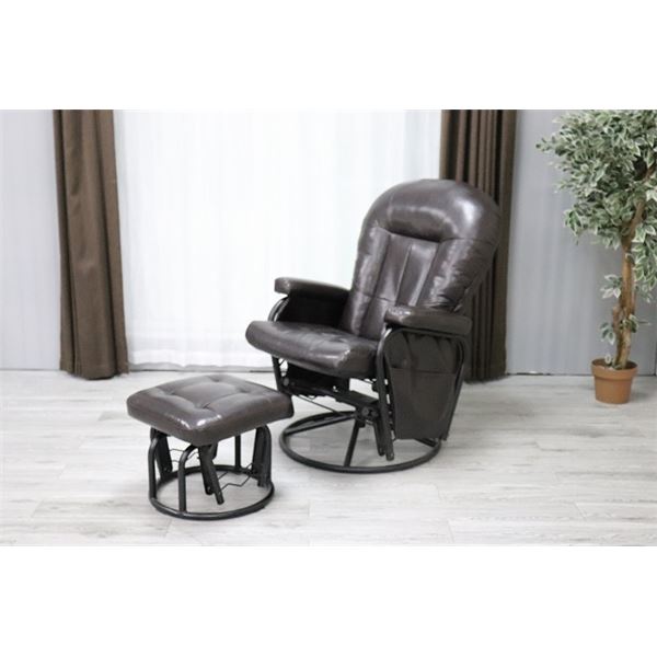 ■ロッキングチェア (イス 椅子) 約幅107cm オットマン 足置き 付 ブラウン 金属 スチール パイプ 合皮 フェイクレザー 張地 組立式 パーソ