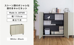 ■【ふるさと納税】幅110cm 石目模様がオシャレなキャビネット MD-8511T ホワイト×ブラック 日本製 ≪寄付者様組み立て品≫ 【キャビネッ