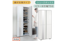 ■【ふるさと納税】[完成品でお届け]シューズボックス ミラー付き 幅75cm[鏡が左側タイプ](ホワイト)シューズラック 扉付き スリム 1