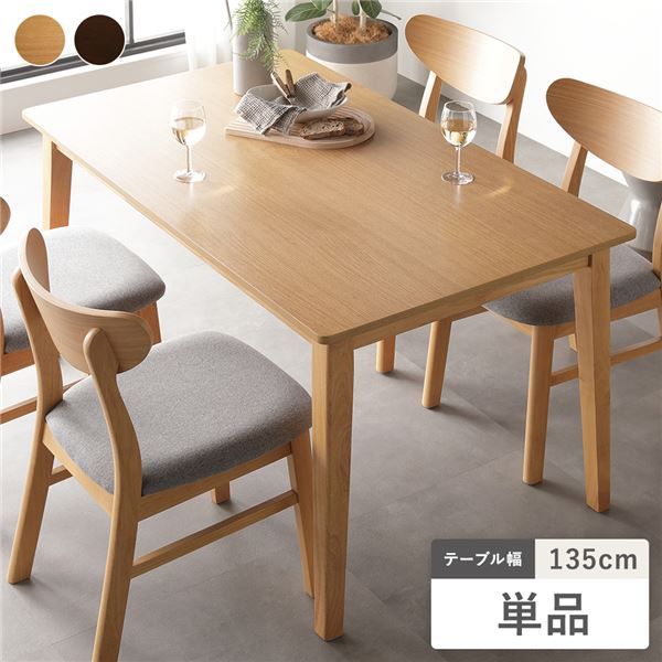 ■ダイニングテーブル ダイニング用テーブル 食卓テーブル 机 単品 幅135cm ナチュラル 天然木 木製 突板 木脚 お手入れ簡単 アジャスター