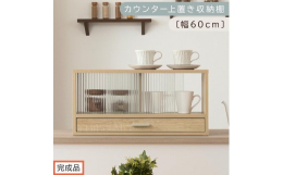 ■【ふるさと納税】【完成品でお届け】カウンター上置き収納棚〔幅60cm〕(オーク)上置き棚 カウンター上収納 食器棚 両面開閉 ミニ食器棚