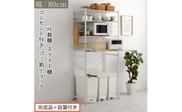 ■【ふるさと納税】【完成品+設置付き】スライド棚付きゴミ箱上ラック〔幅80cm〕(オーク)レンジラック 約 幅 80cm ゴミ箱上収納 ゴミ箱