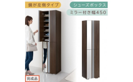 ■【ふるさと納税】[完成品でお届け]シューズボックス ミラー付き幅 45cm[鏡が左側タイプ](ウォールナット)シューズラック 扉付き ス
