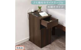 ■【ふるさと納税】【完成品でお届け】ゴミ箱付きサイドテーブル〔右開きタイプ〕(ウォールナット)サイドテーブル おしゃれ ナイトテーブ
